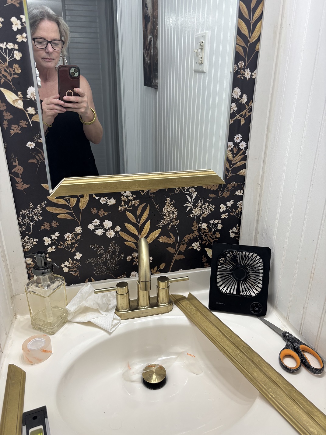 Once dry, I used Gorilla Mounting Tape to secure the frame directly to the mirror. That stuff holds like a toddler with separation anxiety — once it’s on, it’s ON.